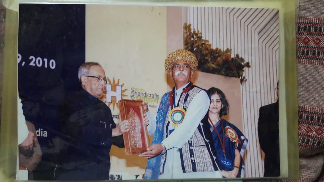 Born into a family of craftsmen, For Mr. Vankar Naran Samat, the art of weaving has been second nature to him. He picked up the mantle of his father at the young age of 13 and he hasn't looked back since then. For him, his art is a way of getting closer to his family and ancestors, with the artform being a family practice and all members of his family involved in the same. The delicate weaves of his craft find strength in the love of familial ties.
